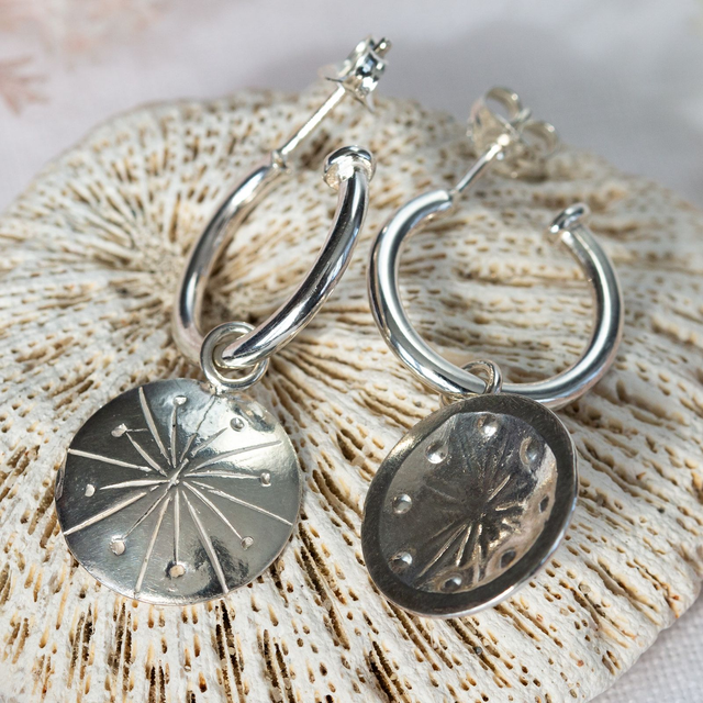 Solid silver Compass hoop earrings with a stud and butterfly fastening. Compass detachable can be removed and hoops worn on their own or mix and match with some of our other detachable designs.