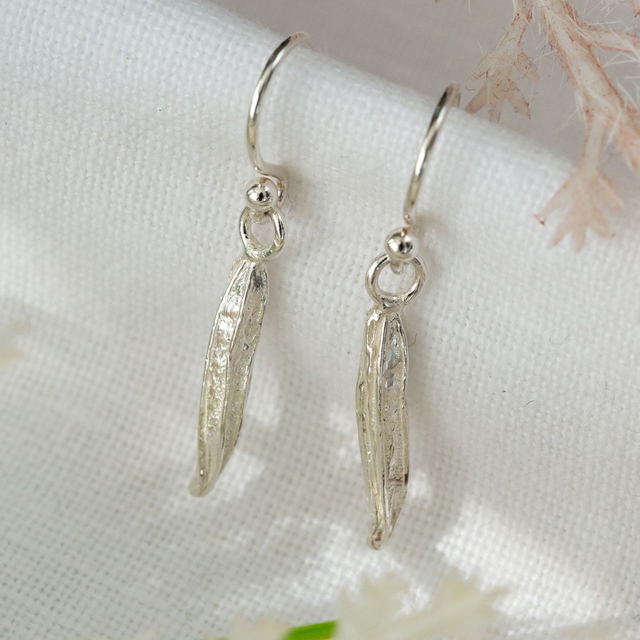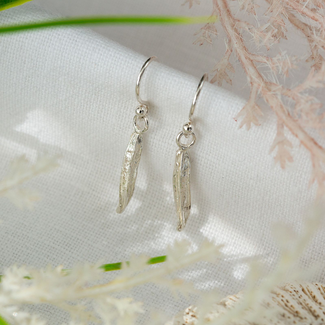 Solid sterling silver seedling drop earrings. Shepherds hook fittings are ideal for comfort.