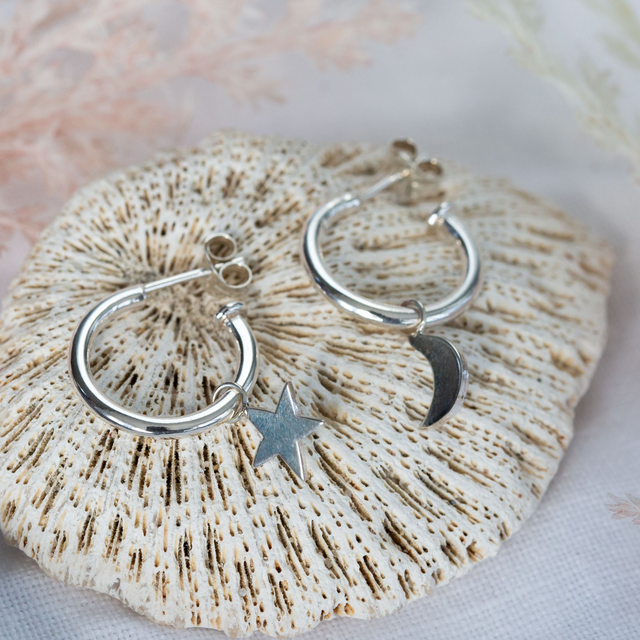 The moon and star can be removed and hoops can be worn on their own.